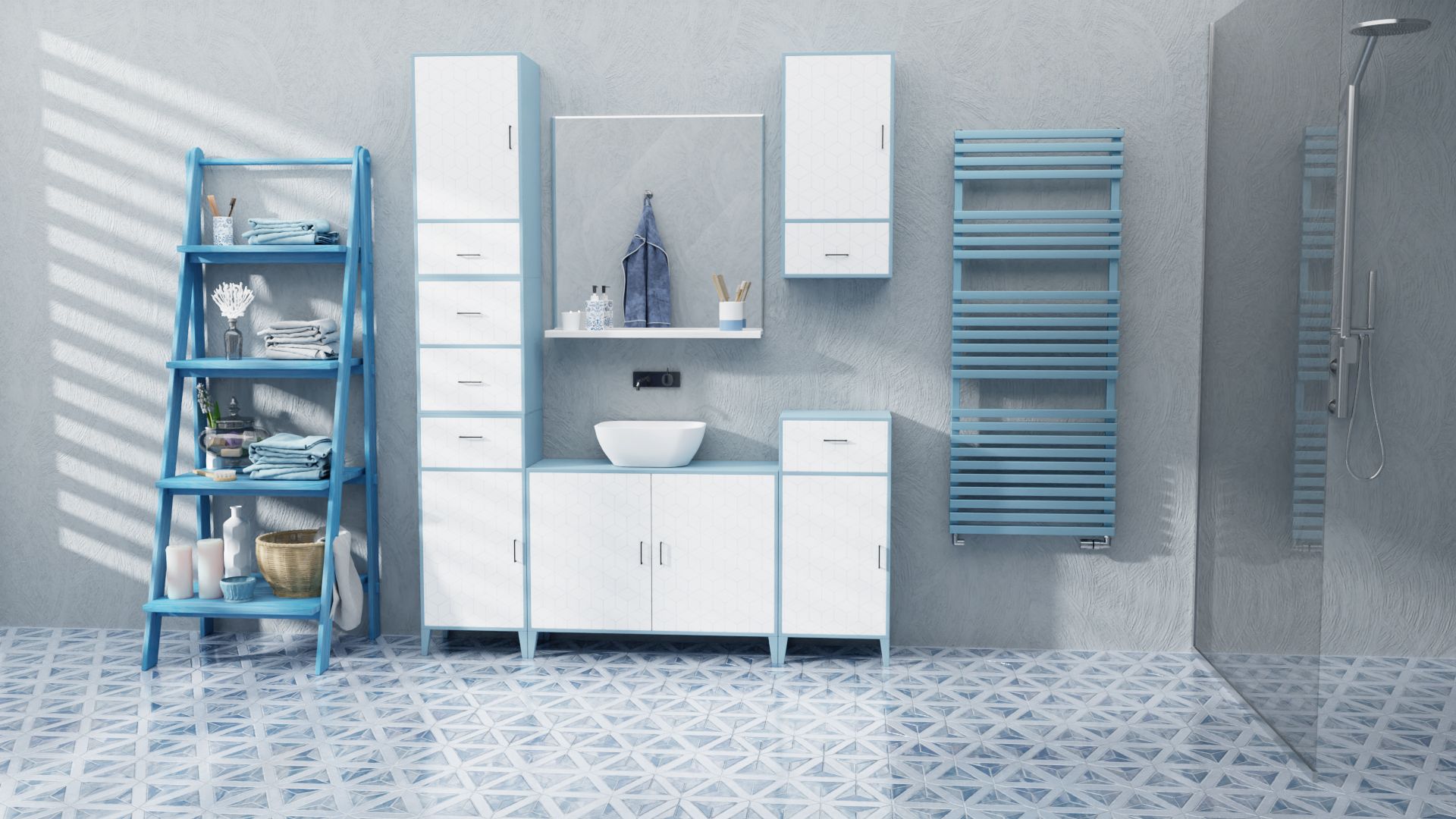 Kubistická forma profilů na dvou bočnicích respektuje současné trendy v interiérovém designu a skvěle doplní hranaté tvary koupelnového příslušenství.