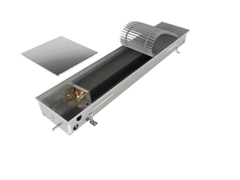 FRM trench heater with natural convection for humid areas. Advantages: - Humid environment including pools - Conservatories, greenhouses, bathrooms, saunas - Garage, warehouses, halls, stadiums - Not intended for swimming pools to be submerged - High heater output - Suitable combination with other types of heating - 2 pipe system